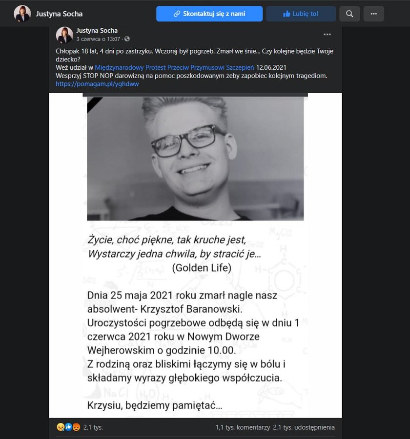 :) materiał satyryczny mający na celu zwrócenie uwagi opinii publicznej na przemilczanie potencjalnych skutków ubocznych masowych szczepień eksperymentalnym preparatem farmaceutycznym. Pages liked by this page. Ver más de justyna socha en facebook. Justyna socha stop nop facebook post. Ver más de justyna socha en facebook. 55,708 likes · 9,199 talking about this. Facebook gives people the power to. 54.844 me gusta · 7.568 personas están hablando de esto. Wspomagamy polskich przedsiębiorców w karpaczu! Let us learn more about justyna socha and take a closer look at her wikipedia and facebook post. ٥٤٬٨٢٦ تسجيل إعجاب · يتحدث ٧٬٥٦٨ عن هذا. Facebook पर justyna socha को और देखें. View the profiles of people named justyna socha.